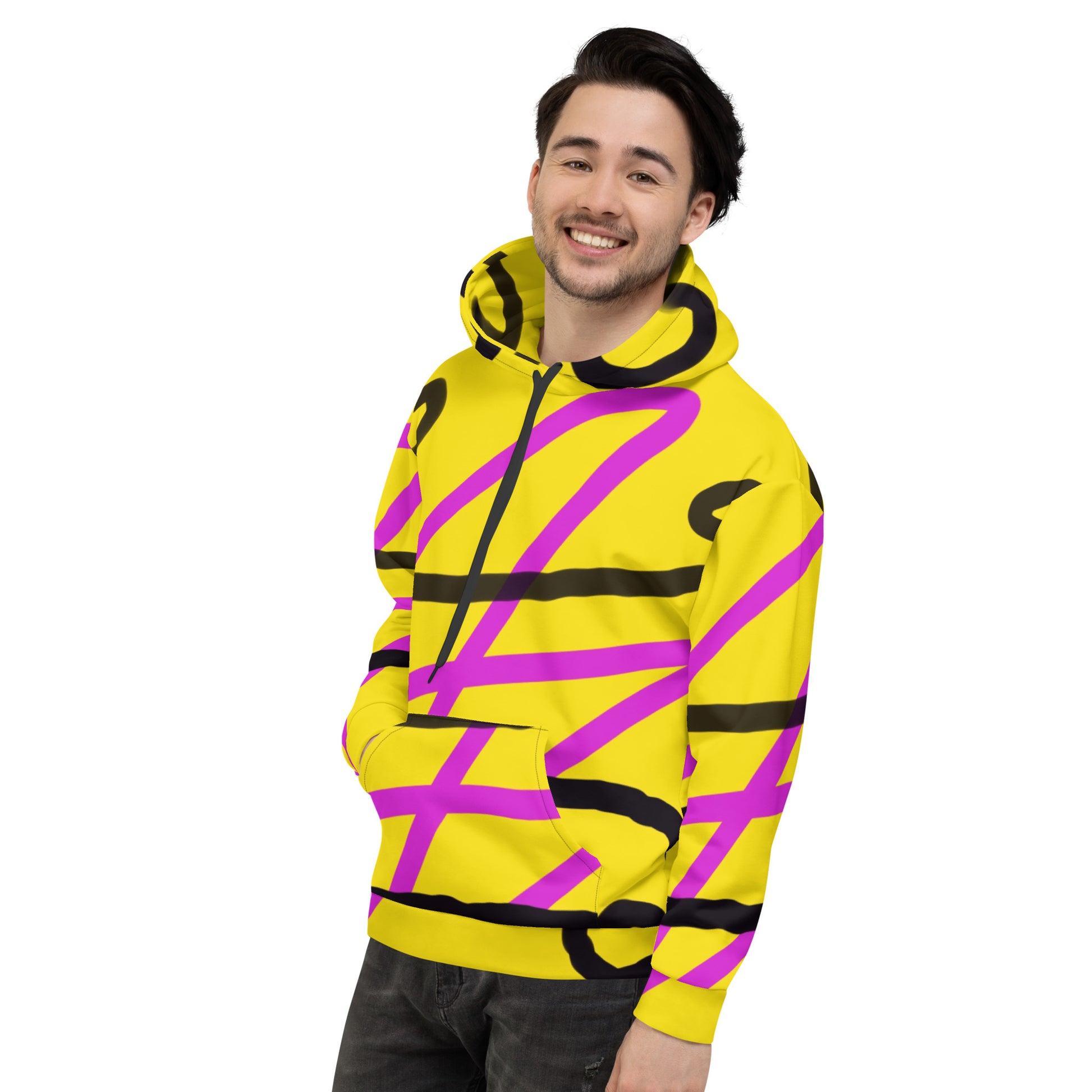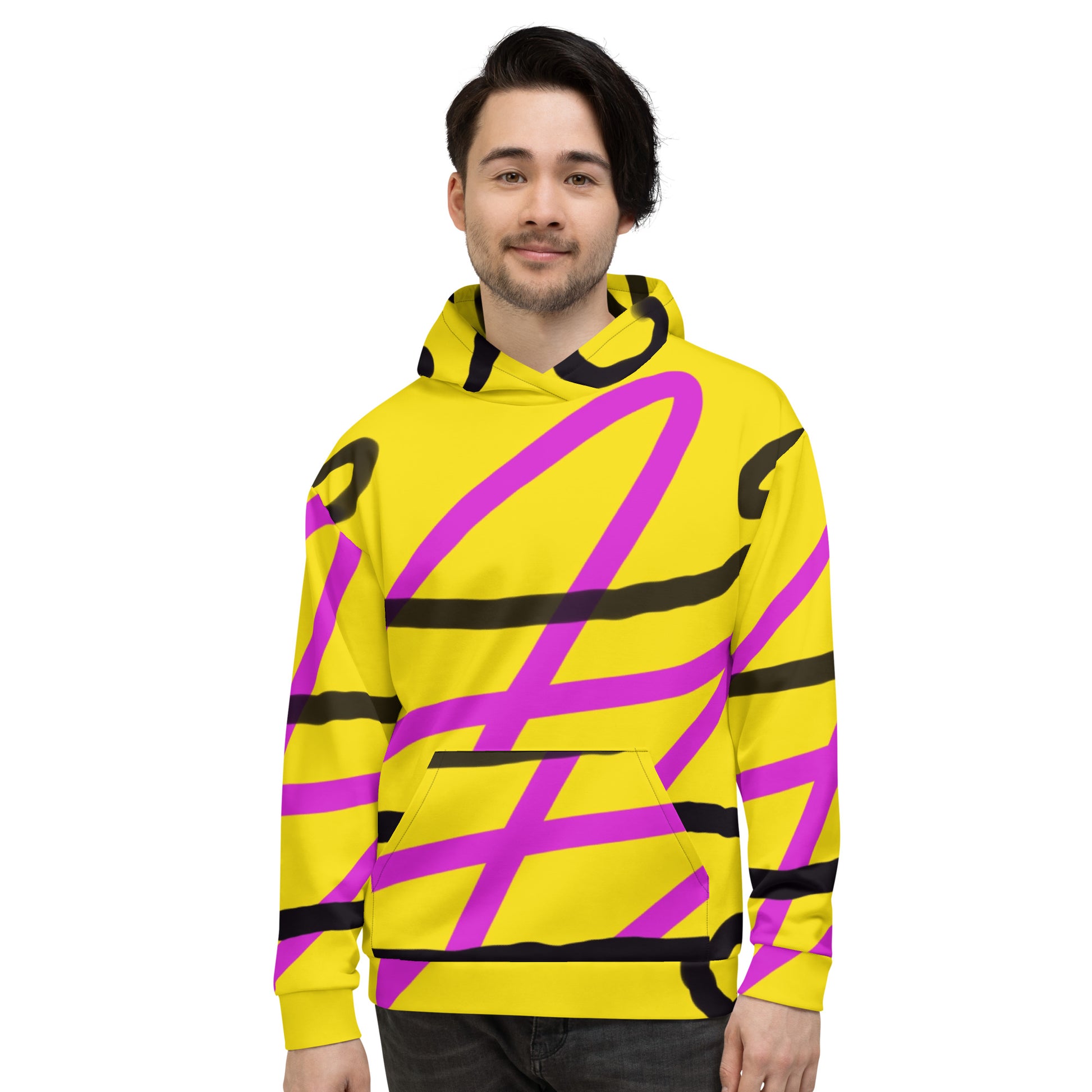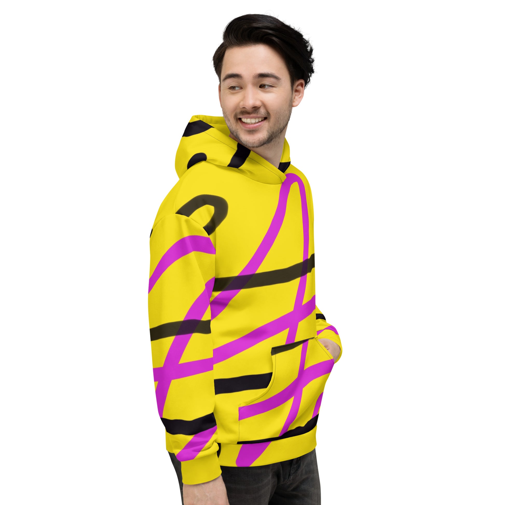 This comfy unisex hoodie has a soft outside with a vibrant print and an even softer brushed fleece inside. The hoodie has a relaxed fit, and it's perfect for wrapping yourself into on a chilly evening.