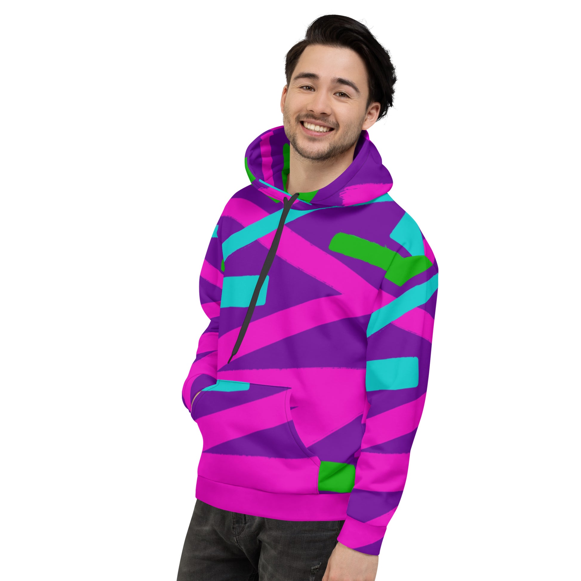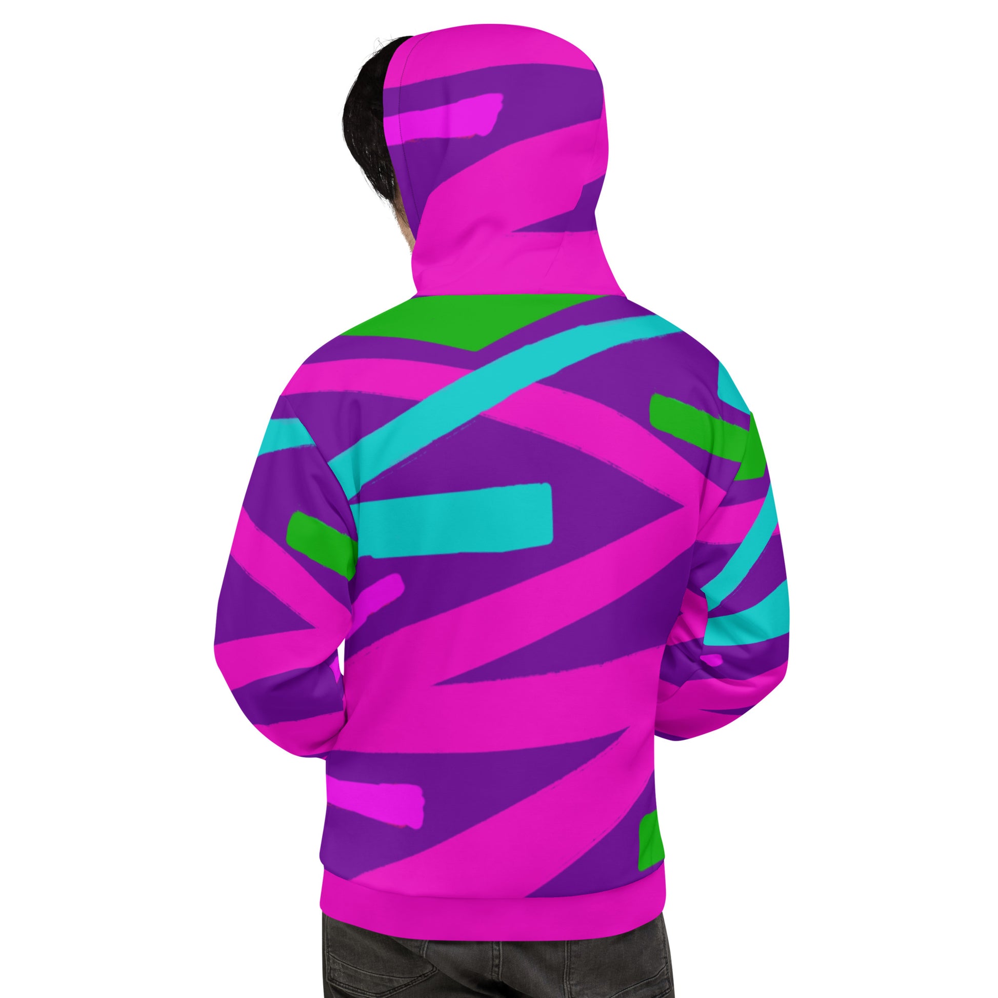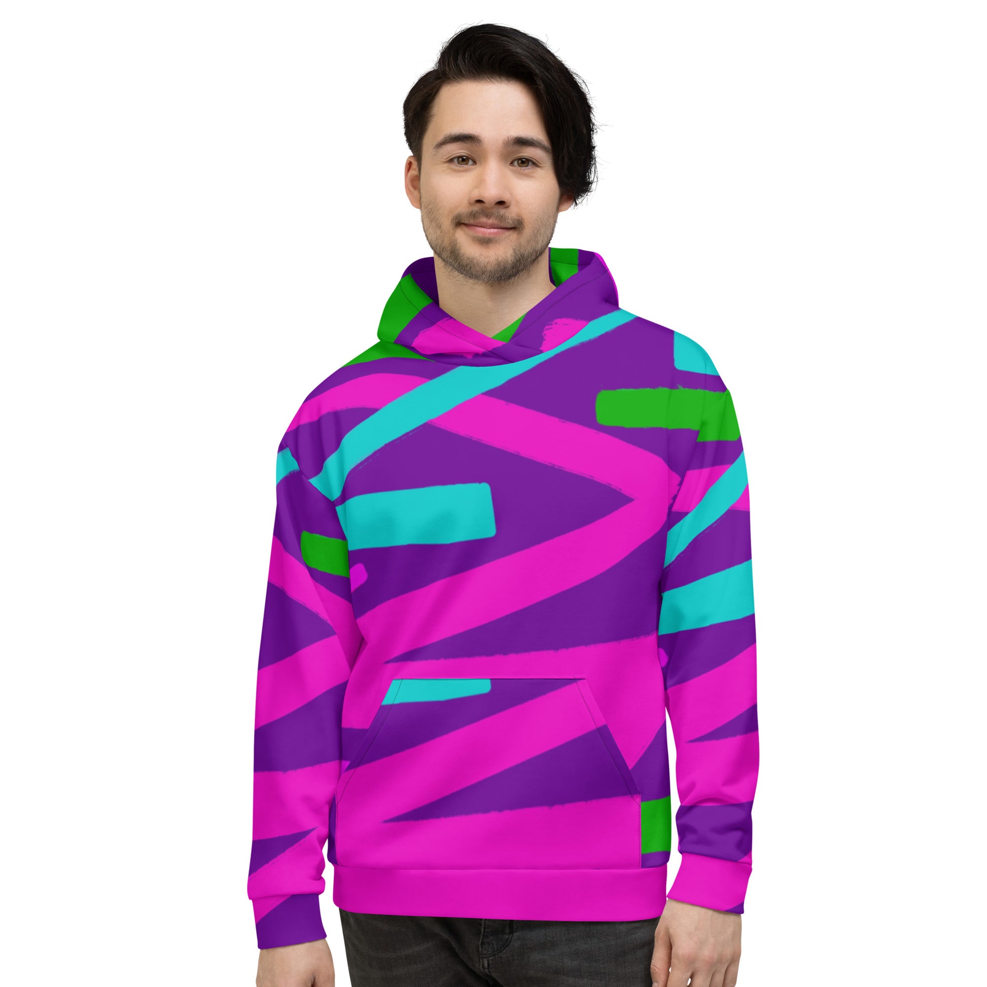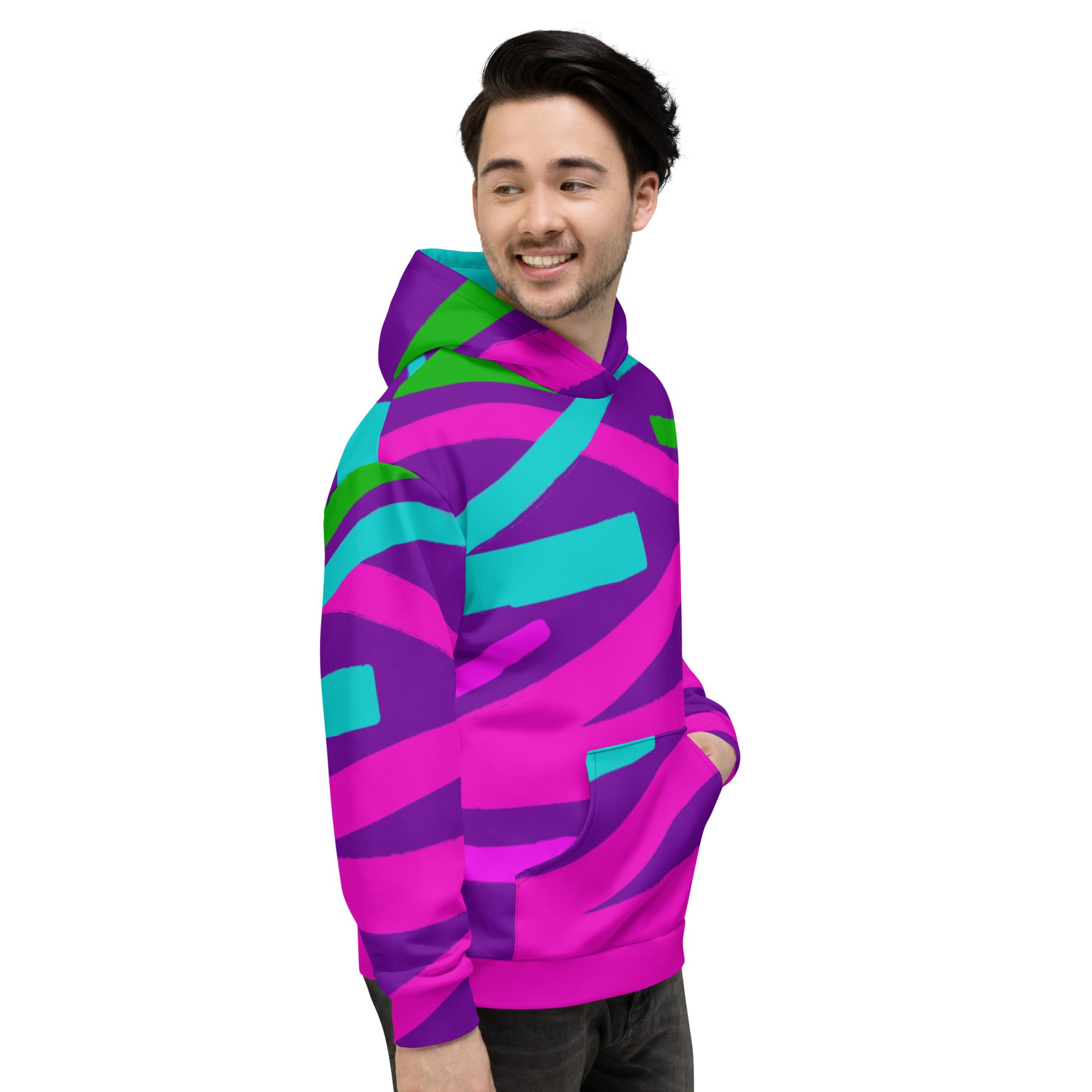 This comfy unisex hoodie has a soft outside with a vibrant print and an even softer brushed fleece inside. The hoodie has a relaxed fit, and it's perfect for wrapping yourself into on a chilly evening.